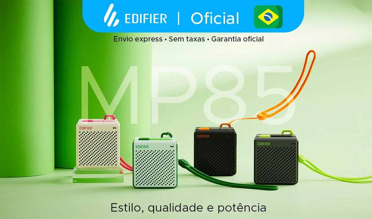 A caixinha de som portátil MP85 Edifier combina tamanho reduzido com áudio de alta qualidade. Com até 8 horas de bateria, design moderno e conexão Bluetooth 5.3, ela é perfeita para levar música para todos os momentos do seu dia.
