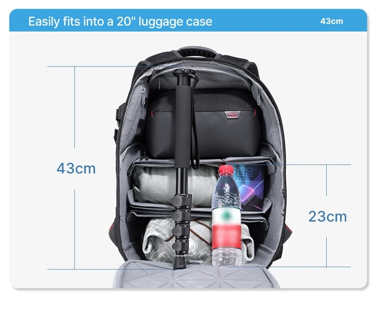 Tamanho de armazenamento de apenas 43 cm, peso de 375g mais conveniente para transportar em uma viagem